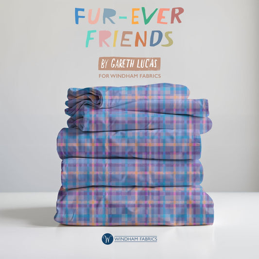 Fur-Ever Friends, Colorful Plaid, Quilting Cotton Fabric, Gareth Lucas, Windham Fabrics