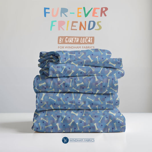 Fur-Ever Friends, Gareth Lucas, Blue Dog Bone Print Fabric, Windham Quilting Cotton