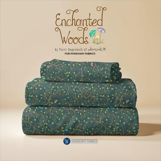 Enchanted Woods Fabric: Green Vines & Leaves Print - Windham Fabrics