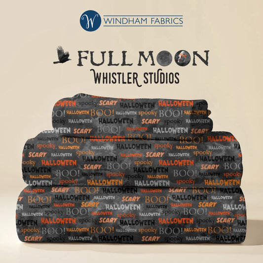 Full Moon Halloween Fabric by Whistler Studios, Spooky Words Print , Windham Fabrics