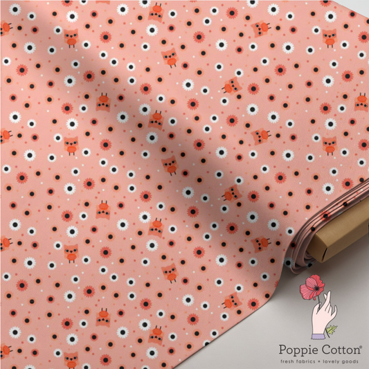 Not So Scary Halloween Cat Fabric – Poppie Cotton Orange Cats with Flowers on Peach - Ship May 2026